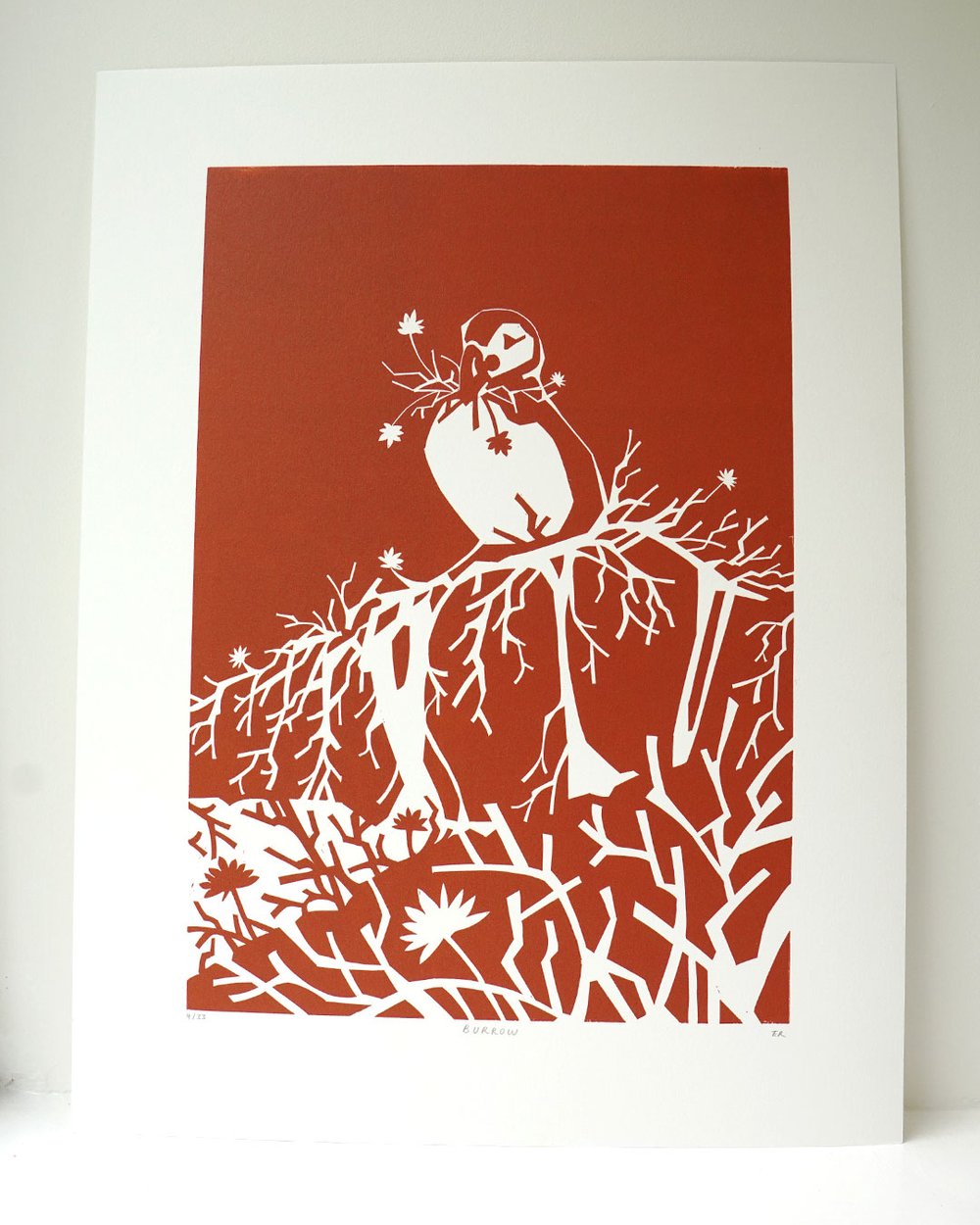 This is an open edition original linocut, titled and signed by the artist.