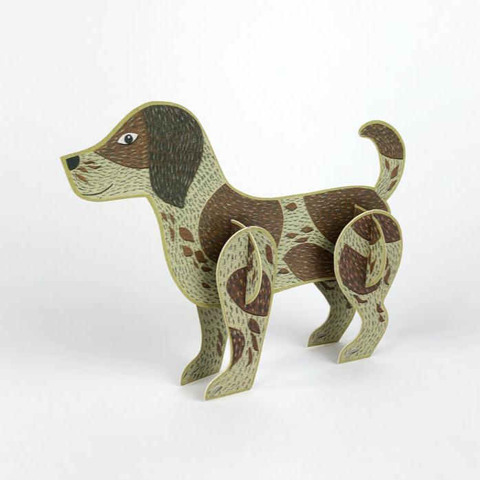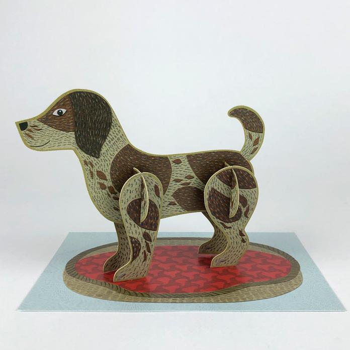 Each card includes a flat die-cut kit that can be assembled by the recipient into a three dimensional model. The animals are accompanied by a message card that doubles up as a home for the animal to perch on.