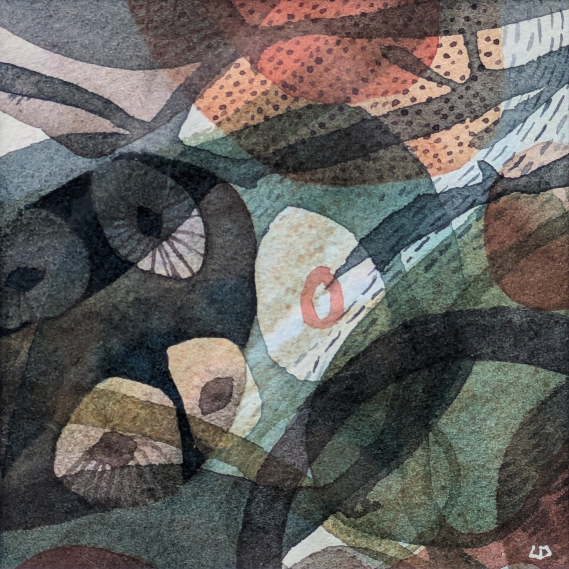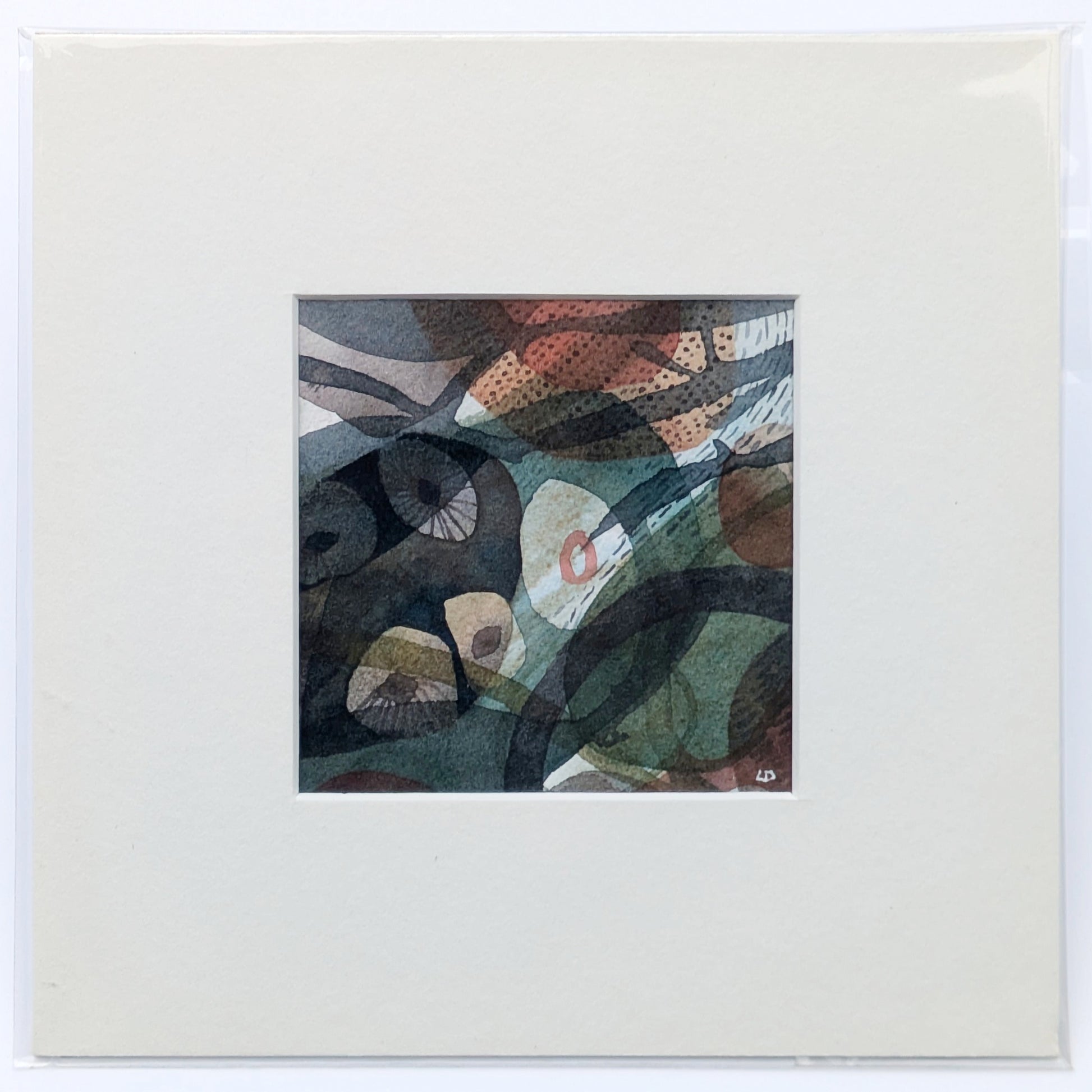 Mounted original abstract water colour, inspired by the patterns and textures of stones found on the shoreline around Mull and Iona.
