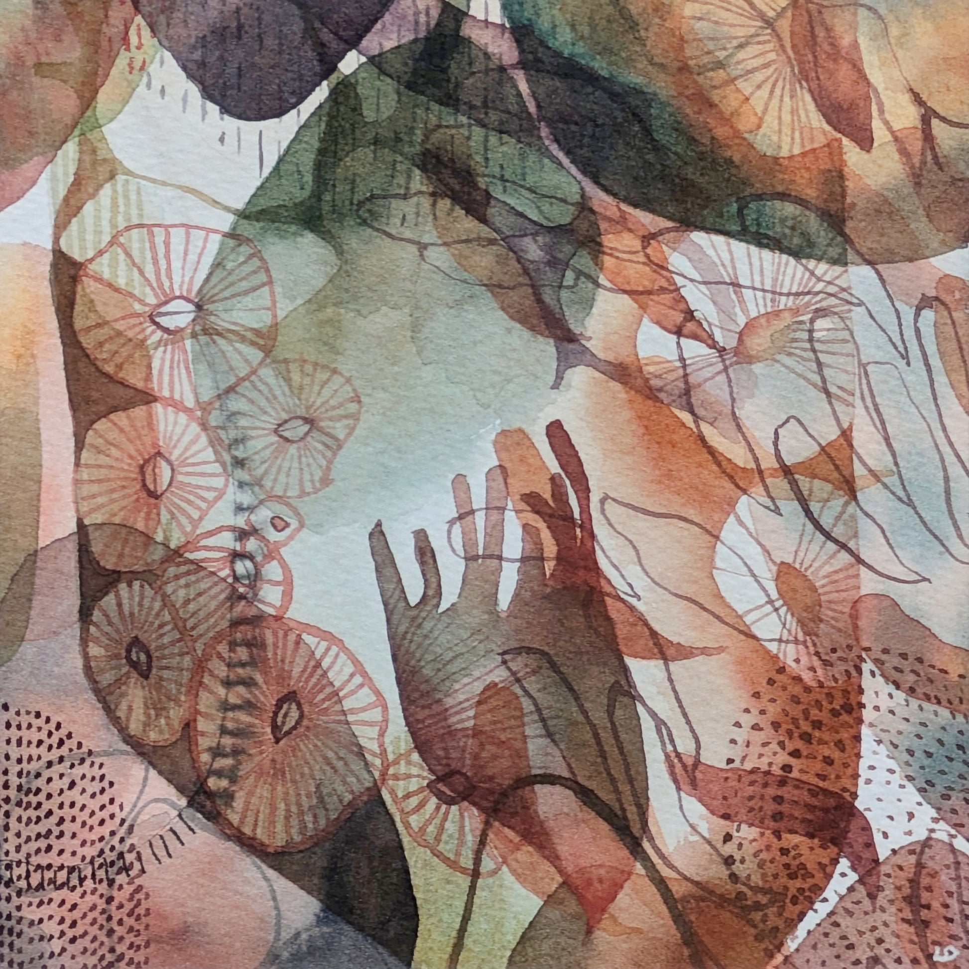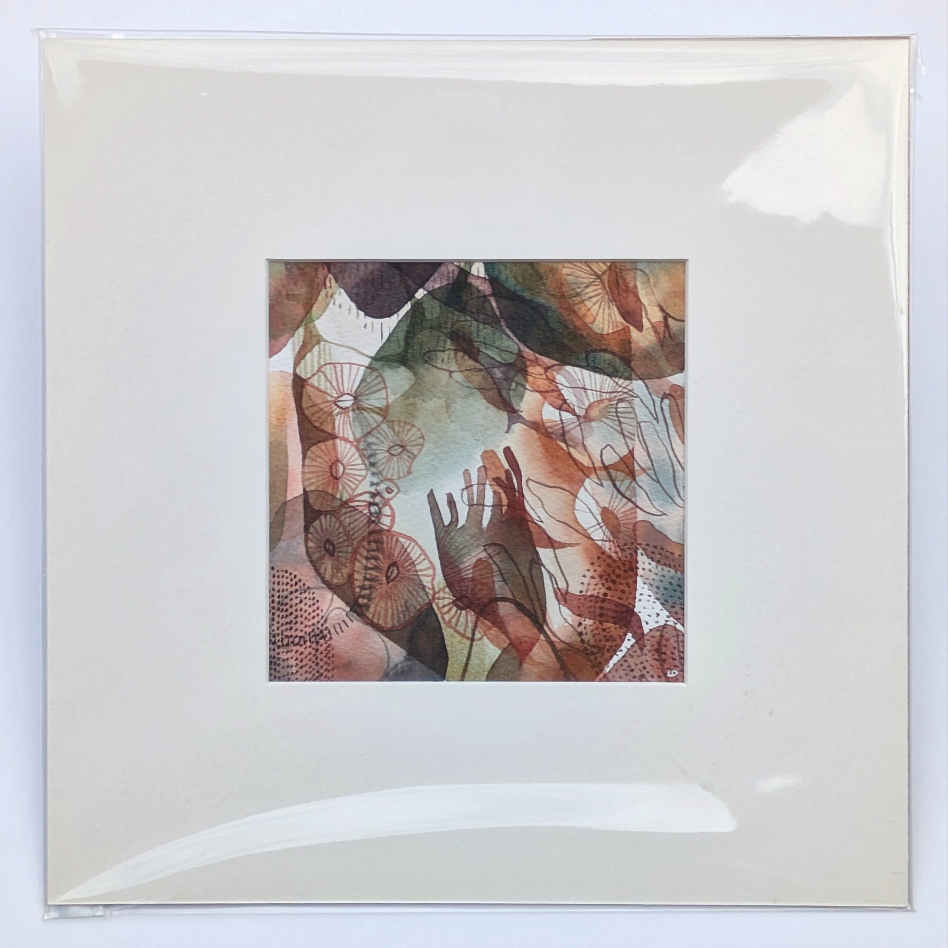 Mounted original abstract water colour, inspired by the patterns and textures of stones found on the shores.