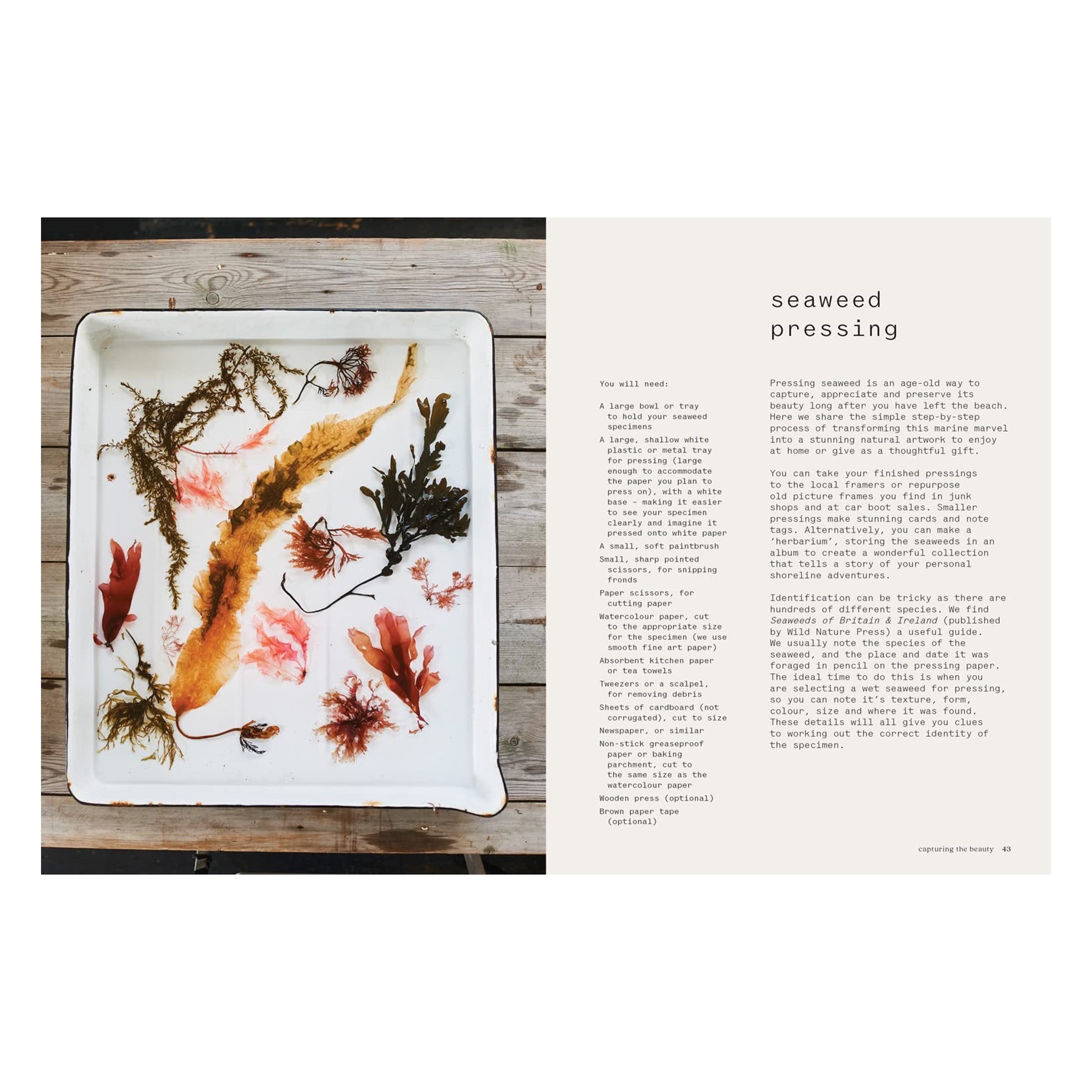 The book is packed with glorious photography of the UK coastlines where the seaweeds can be foraged, alongside stylish interiors, and scenes of beach cook-outs and wild swimming spots. It also includes a library of pressed seaweeds presented in colour categories, with notes for identification and use. There is expert guidance on collecting seaweeds, and it will show how foraged seaweeds can be used at home for cooking, dyeing and printing fabrics, and as part of your skincare routine.