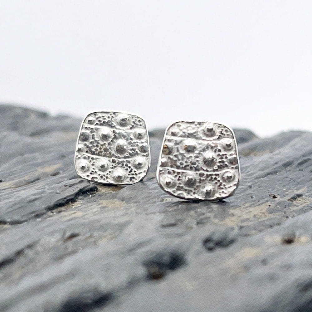 Beautiful hand made silver earrings, embossed with the patterns and textures of a real sea urchin shell.